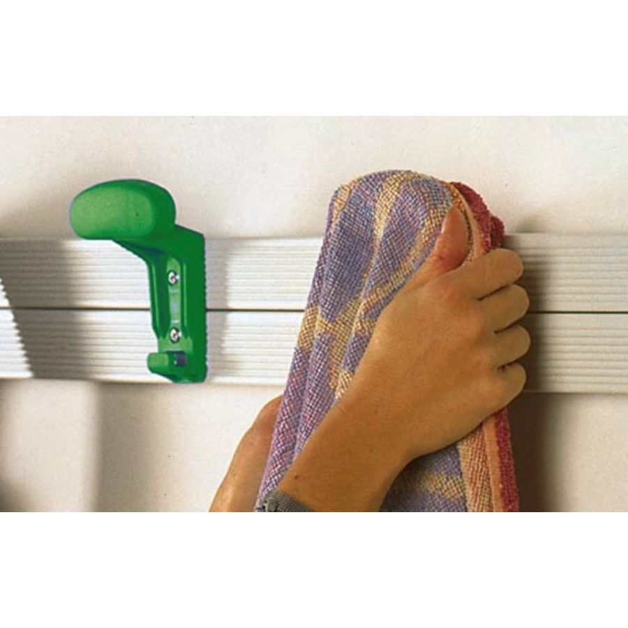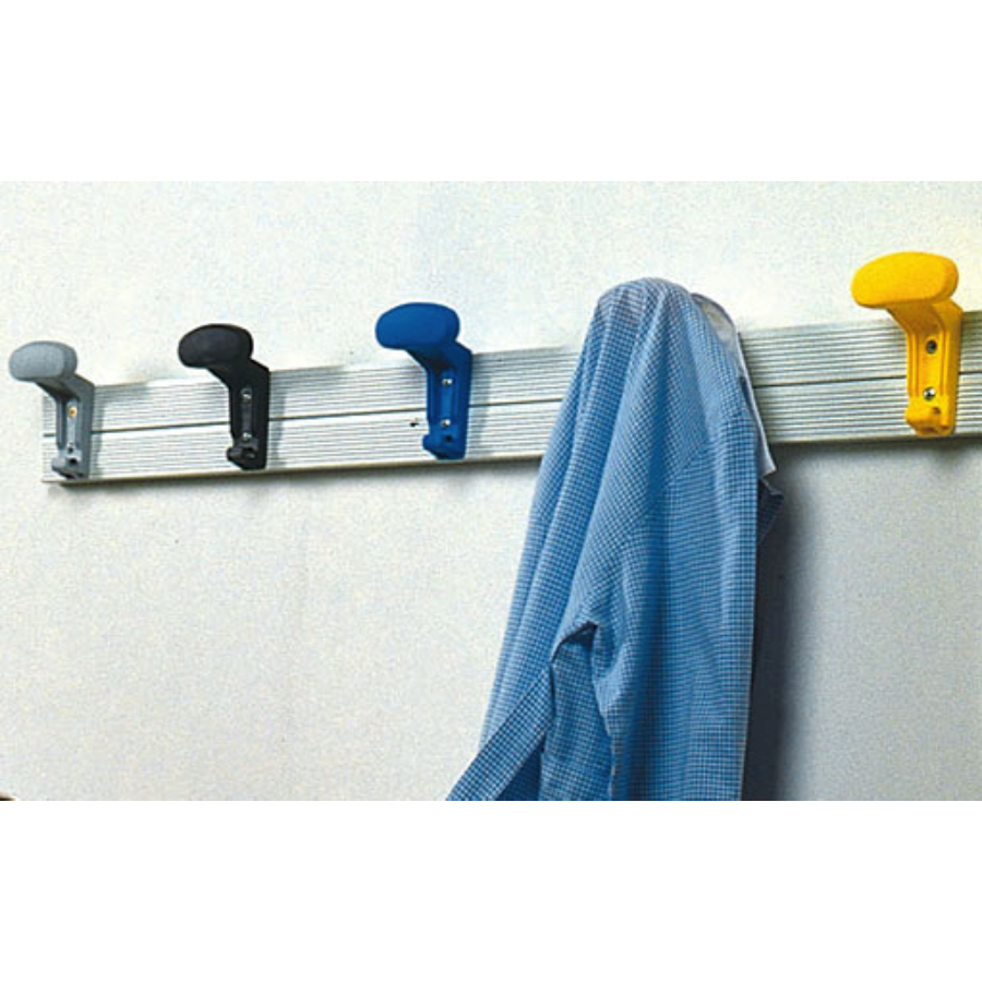Si compone di un supporto in PVC rigido, estruso in doghe a sezione rettangolare cava e di appendiabiti in PP stampati, assemblati tra loro in misure e in numero di appendiabiti diversi, secondo le singole esigenze del cliente. Gli appendiabiti vengono agganciati alla base di supporto attraverso un foro passante per l’appendiabiti, che va a fissarsi alla base di supporto in PVC tramite una vite in acciaio inossidabile, in grado di sostenere notevoli carichi di peso. Disponibile con doga bianca, mentre i ganci sono realizzati in una vasta gamma di colori. Ganci disponibili anche singolarmente, particolarmente indicati per le palestre, le piscine e le scuole di ogni ordine e grado per appendere abiti, giacche e accappatoi.
