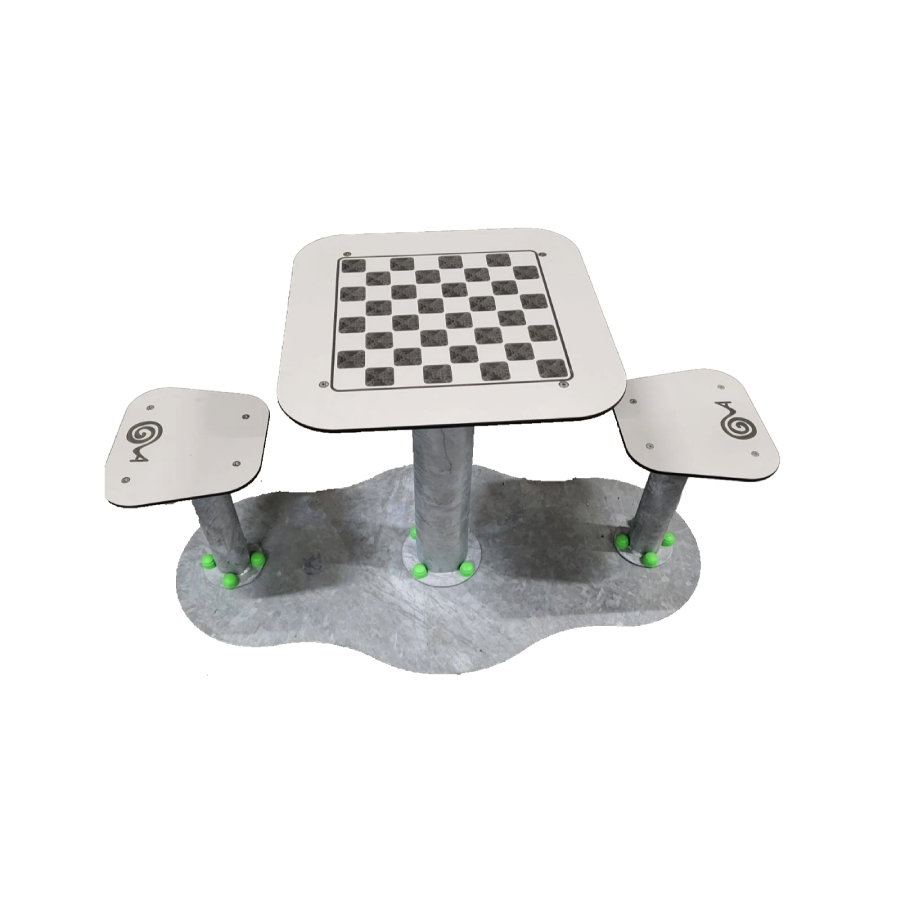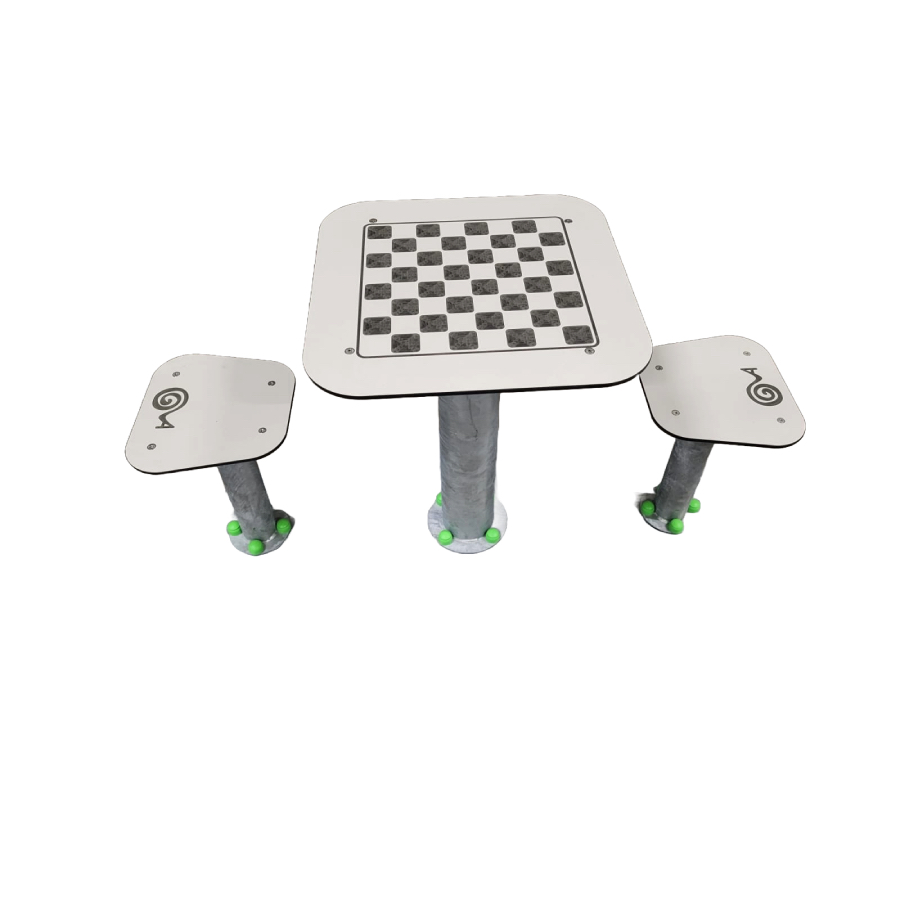 Trattamento superficiale per mezzo di zincatura a caldo, viteria in acciaio inox. Componenti Play: nr.l tavolo, nr.2 sedute. Dimensioni: tavolo cm 60x60x75h, seduta cm 36×32,5x45h.